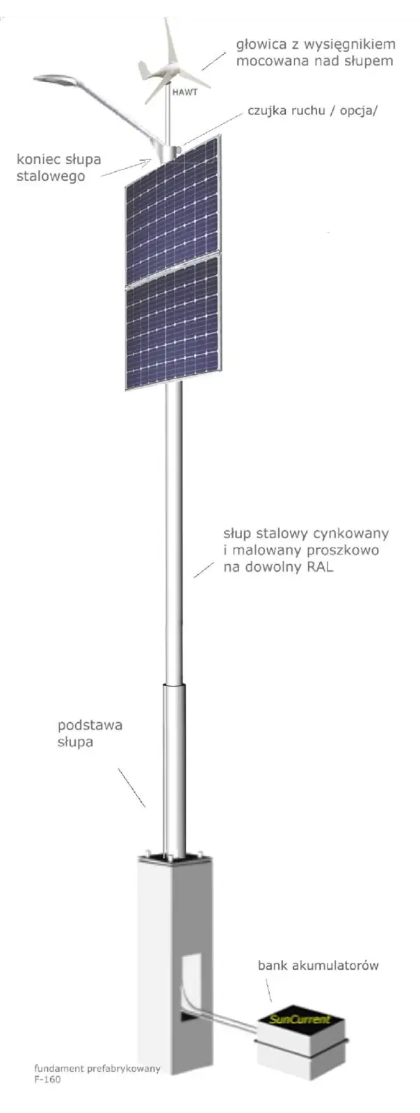 • Lampa uliczna solarna ze słupem o wysokości do 7,5 m